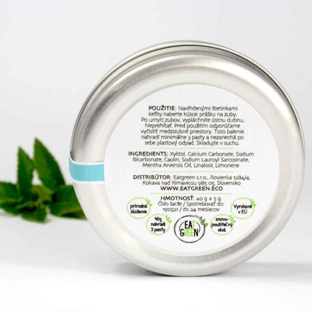 Eat Green | prírodný bieliaci prášok na zuby s peppermintom